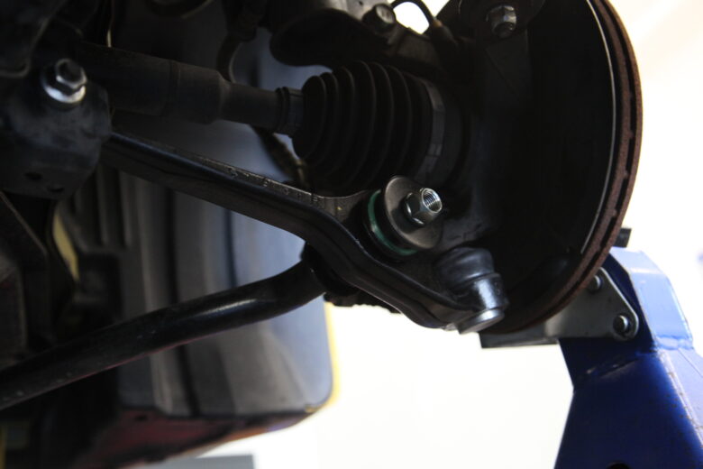 ロアアームやスタビブッシュなどをすべて仮組みしてタイロッドエンドブーツも変えていきます。