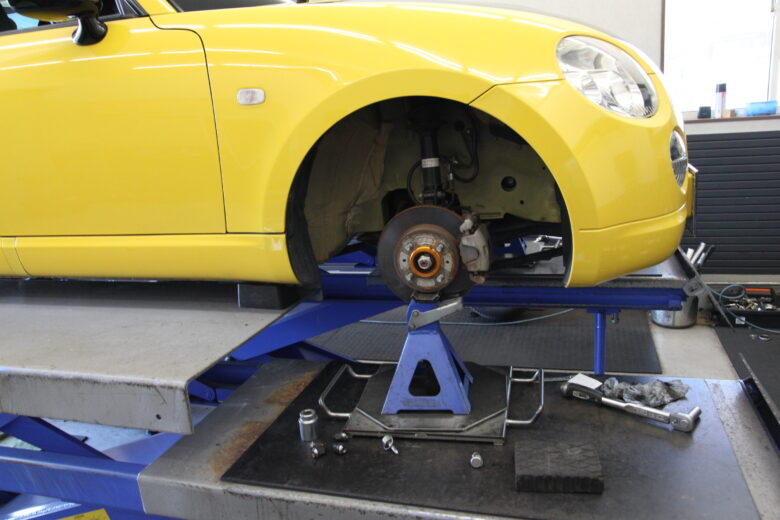 コペン L880K ロアアーム、タイロッドエンドブーツなど交換と四輪アライメント
