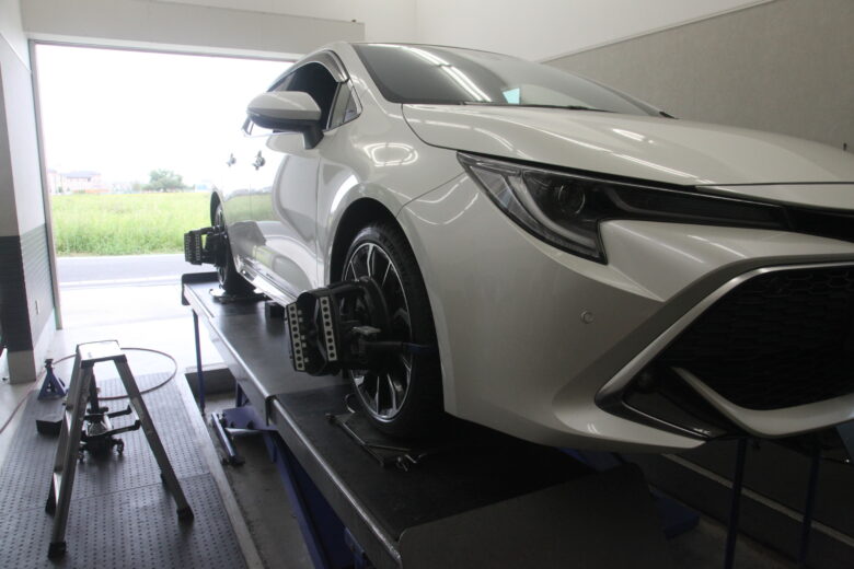 カローラスポーツのタイヤ交換と四輪アライメントです。