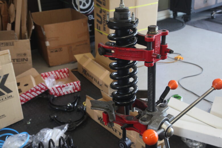 フロントもリアもショックのトップナットを外すのはかなりの苦労を予想していました。