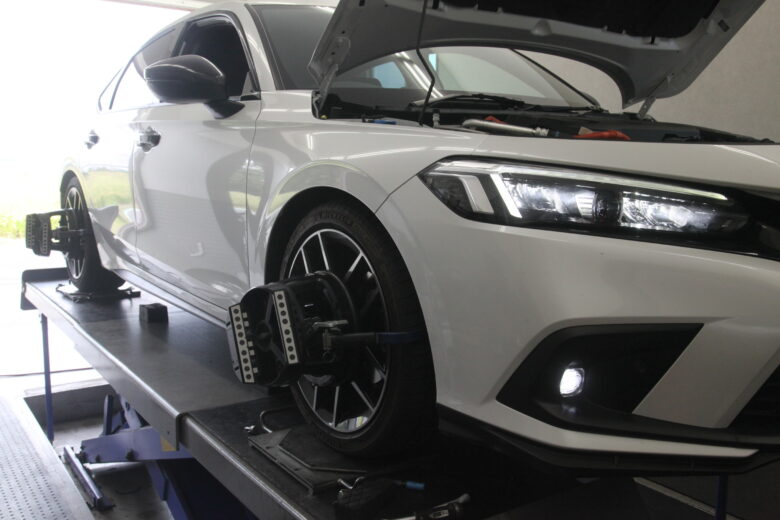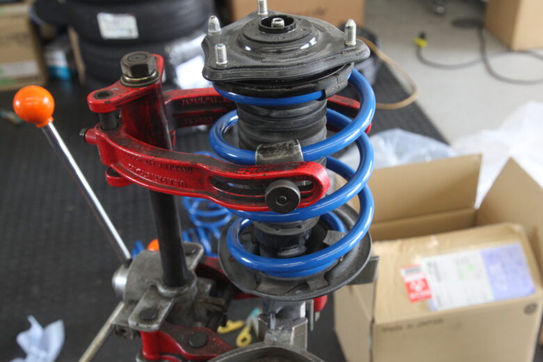 街乗りでのご利用とのことなのでキャンバーは少しでも起こせるほうにして1G締めをおこなっていきます。
