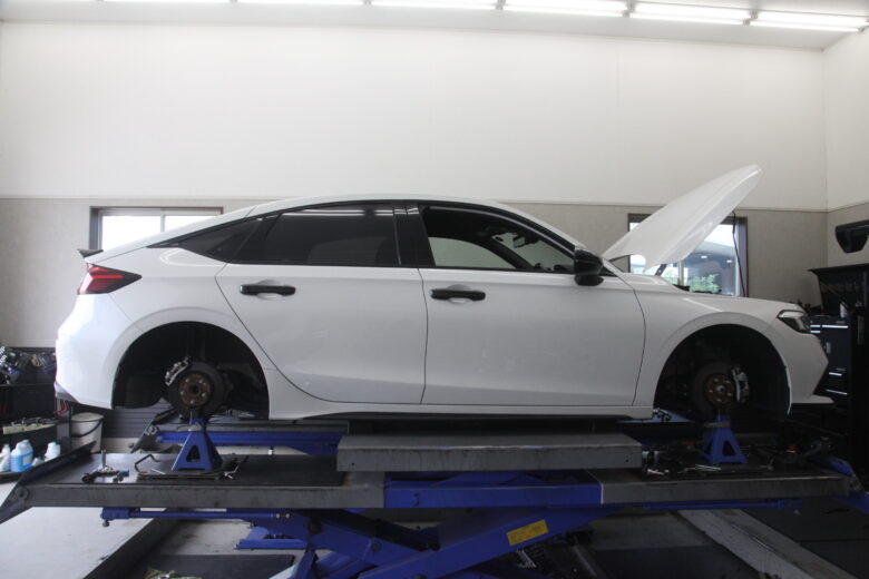 ハイブリッドもFL1などとサスペンション形状は同じなので交換はいつもの方法でおこなっていきます。