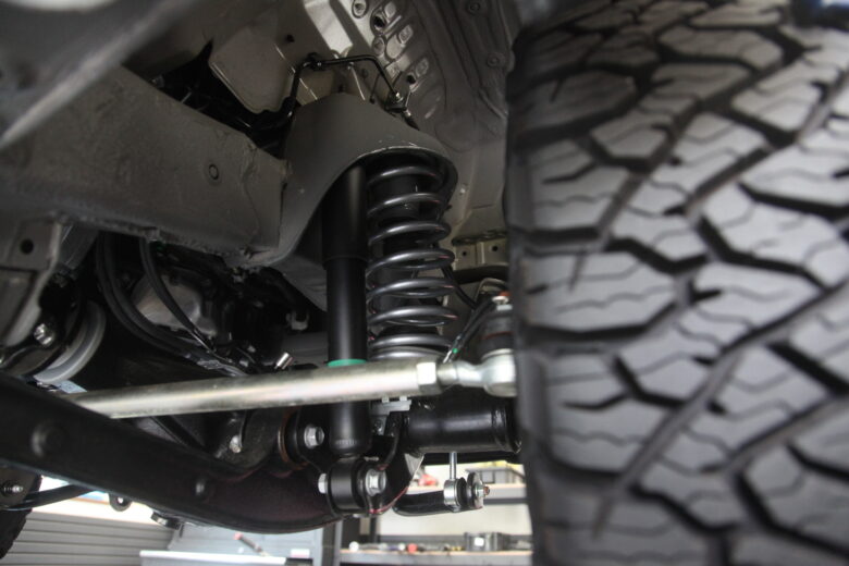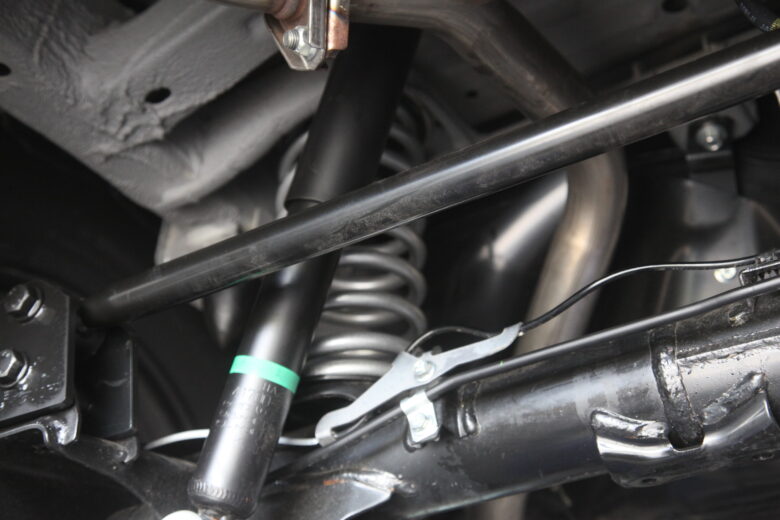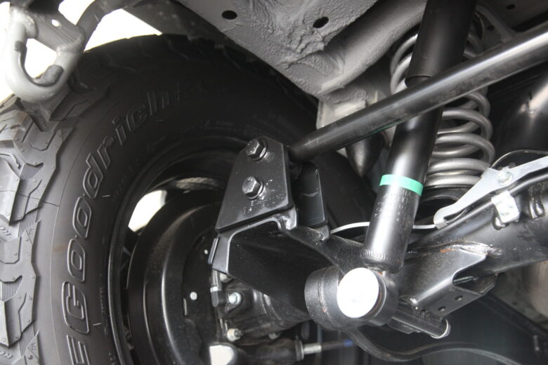 車高は1インチアップのスプリングとその他のキット商品にタニグチのラテラルダウンブラケットです。
