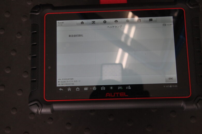 ODB2テスターを繋いでしAFSの初期化やEPSのステアリング関係の初期化、校正をおこなっていきます。