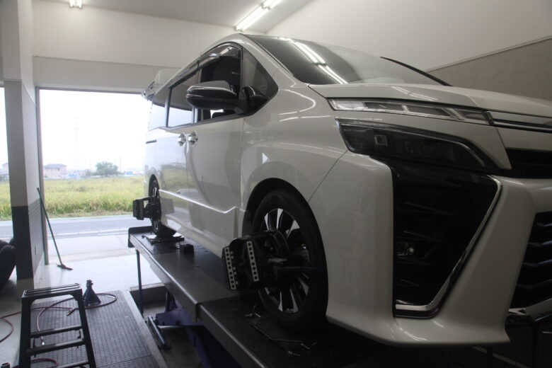 四輪アライメントは外減りがひどい車両になりますのでトーの数値とキャンバーの数値も変更していきます。