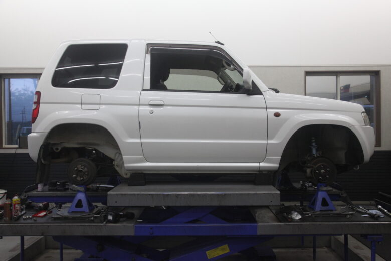 パジェロミニのKYBショックとロアアームなどのアーム類を交換です。