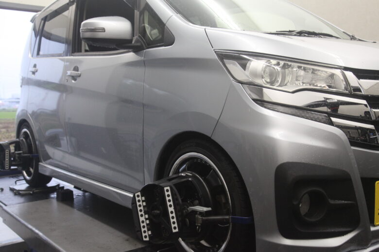 デイズにブリッツの車高調装着車の車高調整と四輪アライメントです。