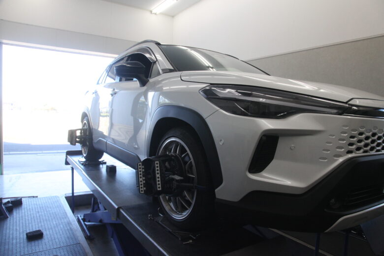 四輪アライメントはフロントのキャンバーとトーの修正となります。