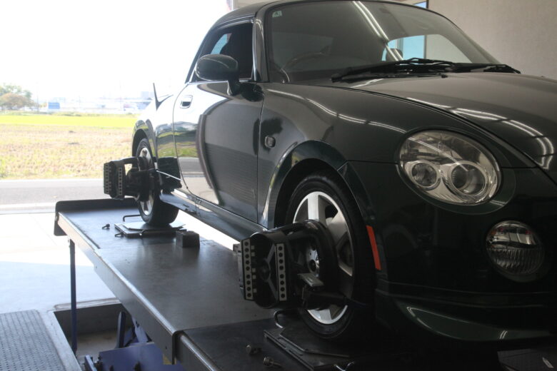 四輪アライメントはフロントのキャンバーとトーの調整をおこなっていきます。