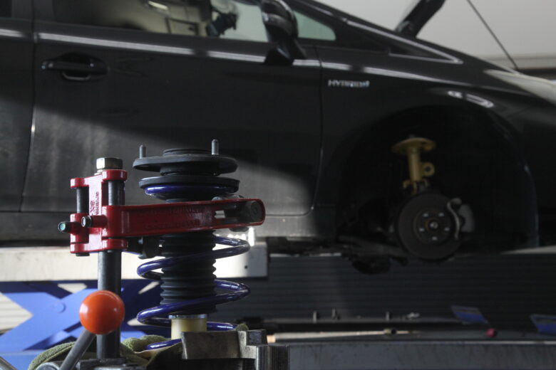 プリウス にKYBのローファースポーツキットの取り付けです。