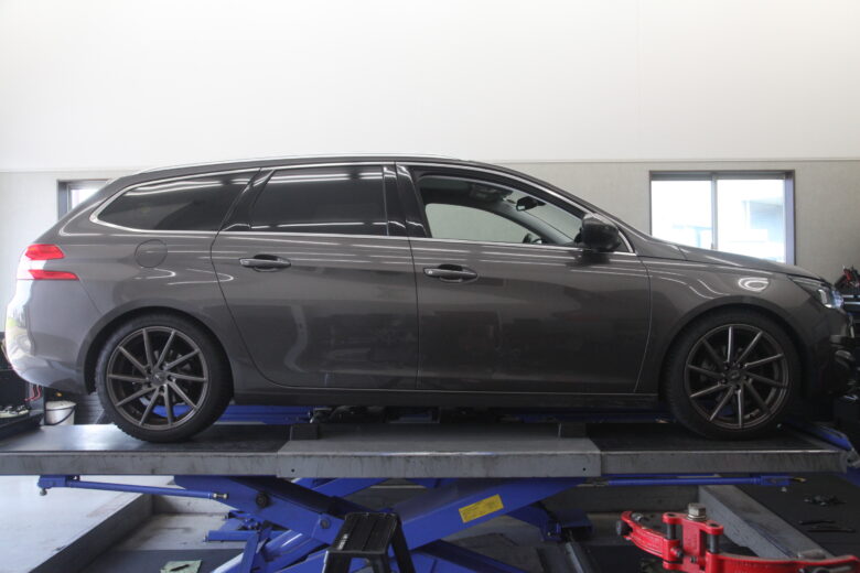 以前はPEUGEOT 308 T9 Mk2 SW ESTATE 1.2 AUTOMATIC 2014- F30/R25mm PI LOWERING SPRINGSというっスプリングをつけていますが車高が下がってきたので交換するそうです。