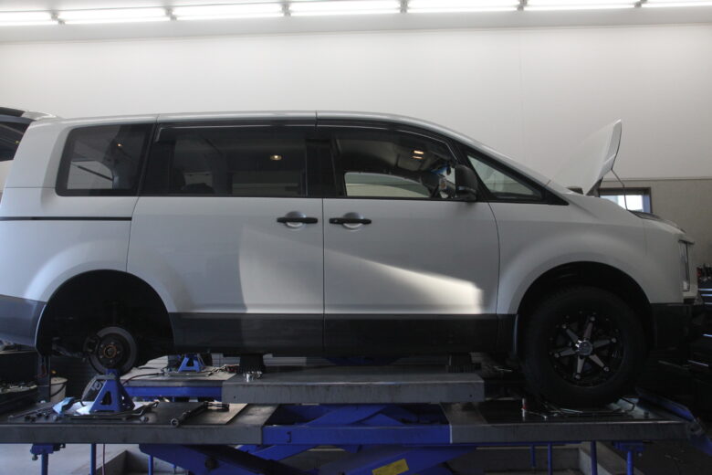 BATTLEZ リフトアップセット VFS デリカ D:5 DIESEL(19+)の取り付けとタイヤ交換235/70R16に交換の作業です。