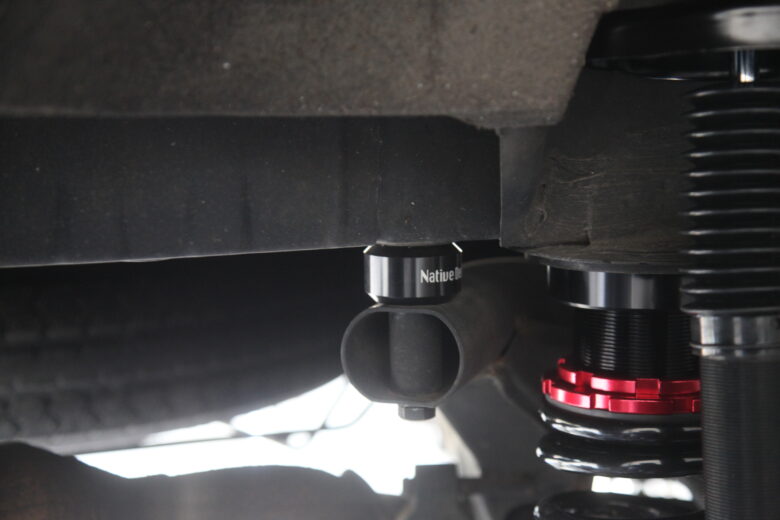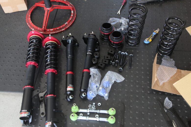 フロントはとりあえずスタビリンクを切って外して車高調をインストールこの時点では当たる箇所もありません。