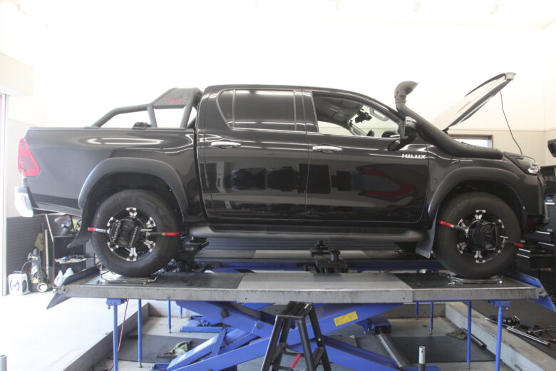 さて交換をして1G締めをして四輪アライメントを実施していきます。