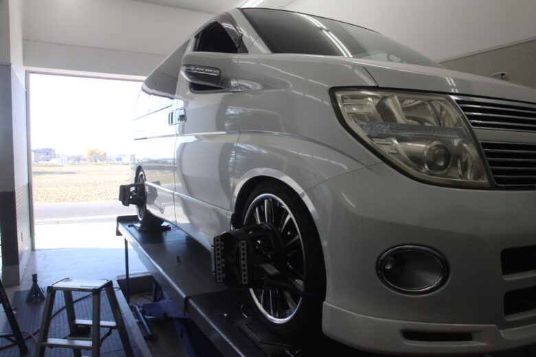 TEIN車高調を装着されたそうで1G締めと四輪アライメントの調整のご依頼をいただきました。