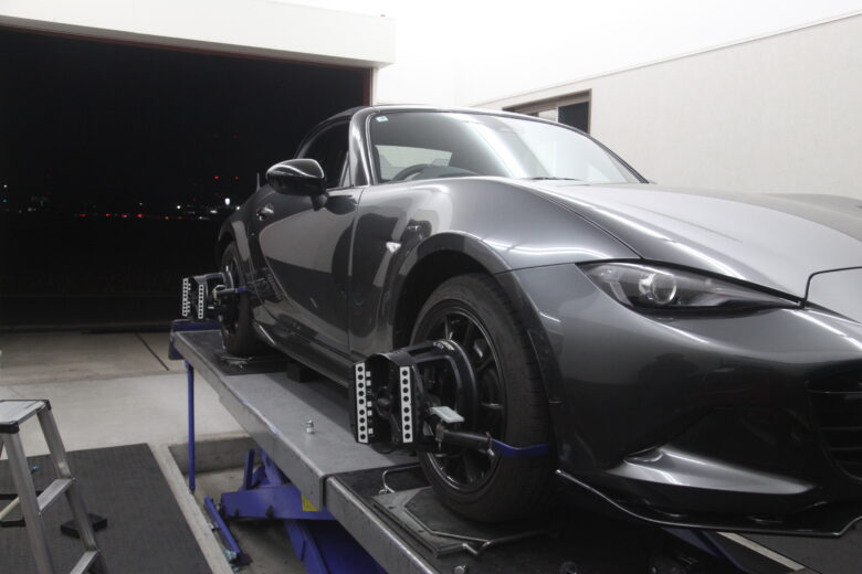 とりあえず作業ができそうなくらいにはなりましたので締め直しを終えて四輪アライメントです。