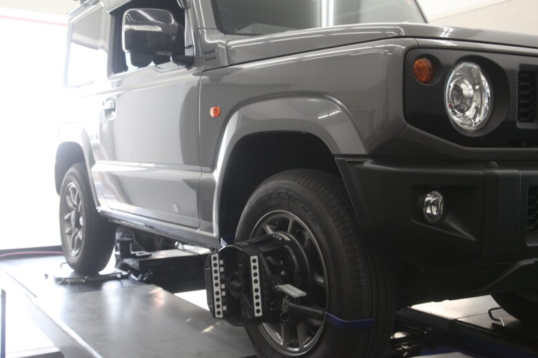 ジムニーの調整可能箇所はフロントのトーの量と角度です。