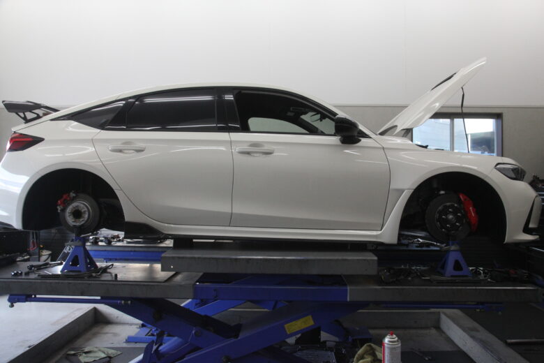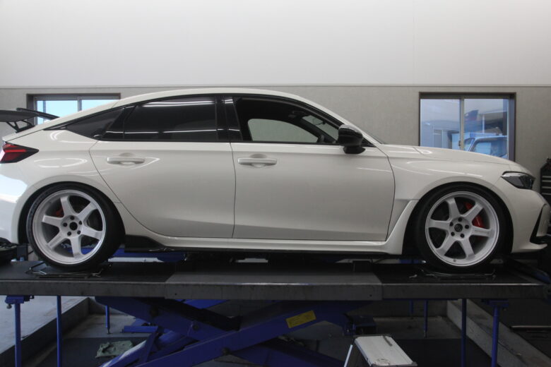 この作業で取り付け作業完了となりますがホイールのマッチングがかなり厳しいのでネガ方向にリアはセッティングをしてフロントも一番ネガにしておきます。