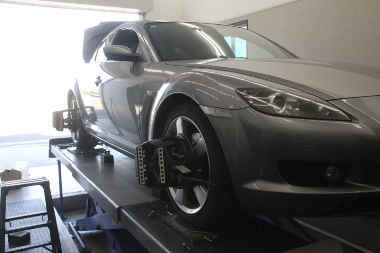 四輪アライメントは1箇所はフロントは回りましたので動かせる位置を基準に合わせていきます。