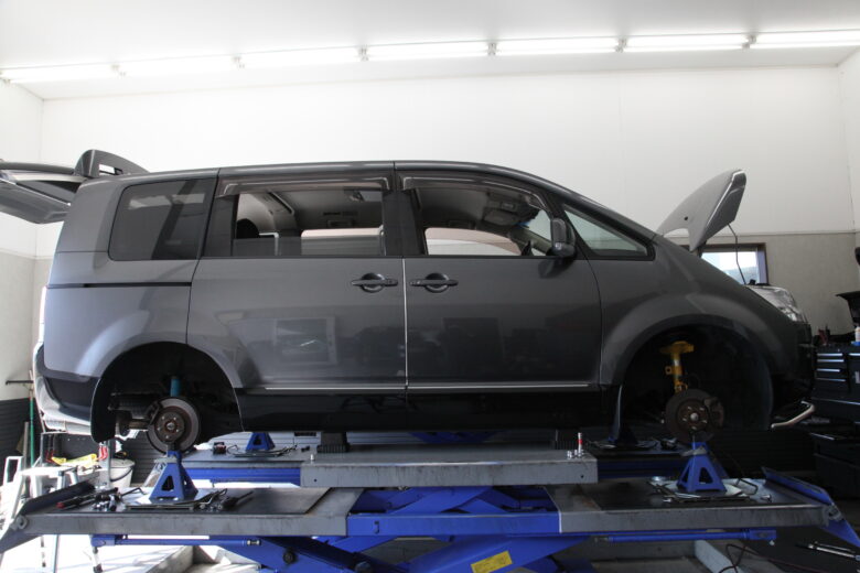 まずは取り付けして1G締めをおこなって四輪アライメントです。