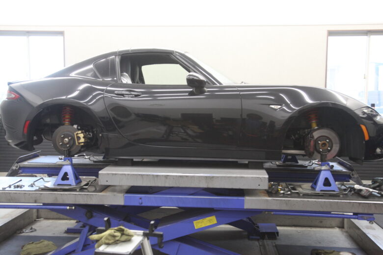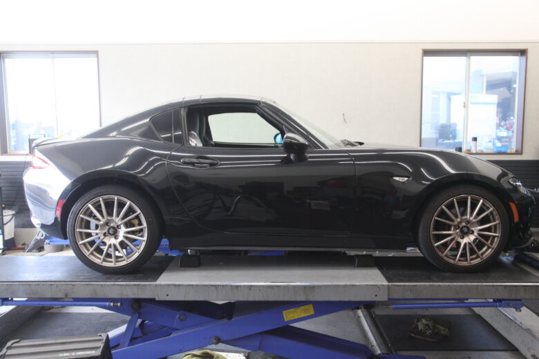 現在は3年ほど前に取り付けをしたRS-Rのダウンサスがついていますが車検が通らないそうで今回交換となりました。