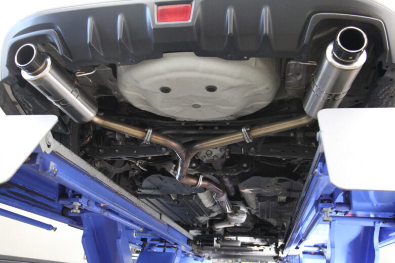 HKSさんのマフラーの中間が一番低いのでその部分で合わせていきます。