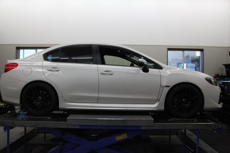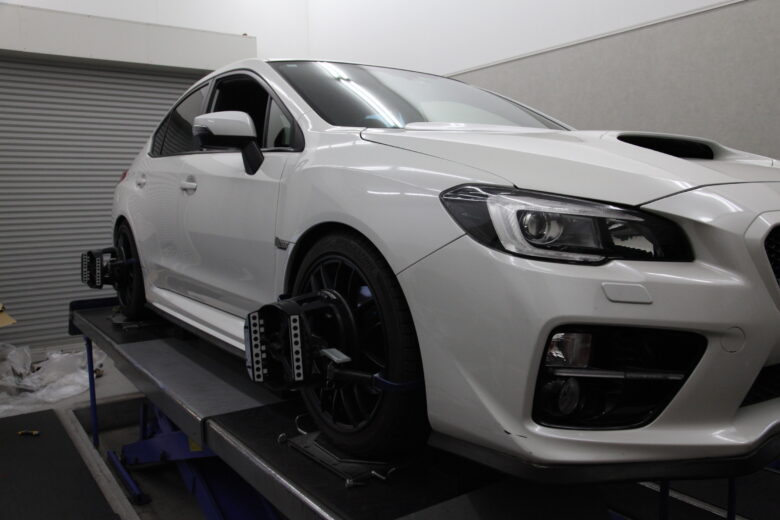 車高が決まれば1G締めをおこなって四輪アライメントです。