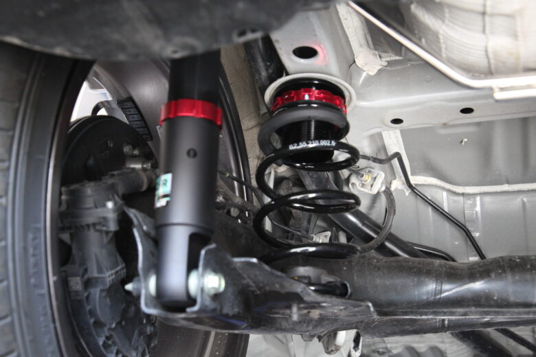 現状の車高よりリアは1cmアップで取り付けをおこなっていきます。