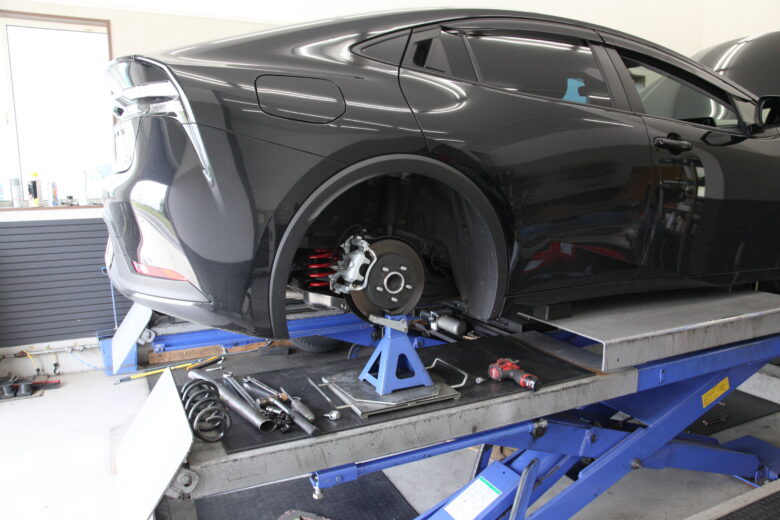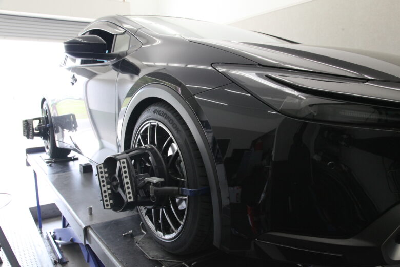 四輪アライメントはリアのキャンバーは起こしてセッティングをおこなっています。